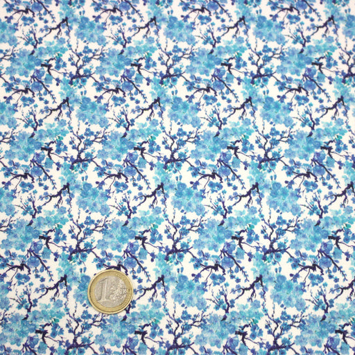 Tissu cotonnade fleuri japonais MINI SAKURA bleu turquoise - OEKO-TEX STANDARD 100