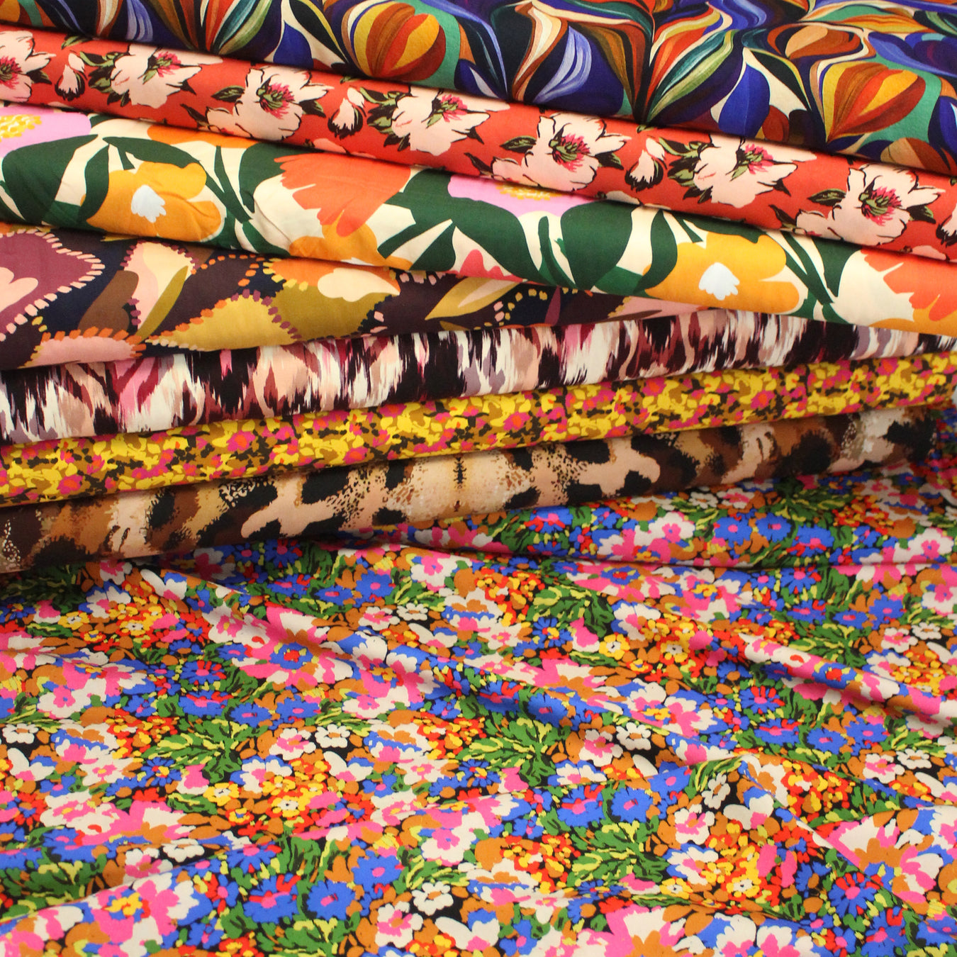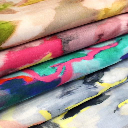 Tissu LIN VISCOSE habillement, collection CORES DO RIO, 4 tissus très colorés abstraits