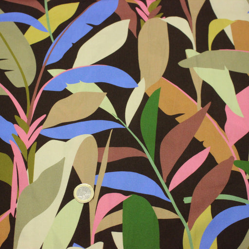 Tissu Viscose fluide FLOR DE SOL floral tropical chocolat vert bleu rose - STANDARD 100 OEKO-TEX