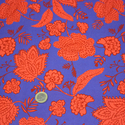 Tissu Viscose fluide KHIMSAR, motif floral INDIENNES bleu et rouge - STANDARD 100 OEKO-TEX