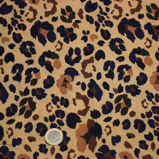 Tissu Viscose fluide LYNX motif léopard ocre et noir – STANDARD 100 OEKO-TEX