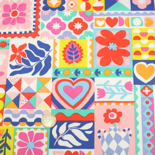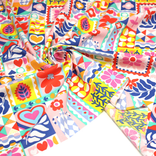 Tissu cotonnade Fleurs, feuilles et formes géométriques colorées - COLLECTION SICILIA - OEKO-TEX STANDARD 100
