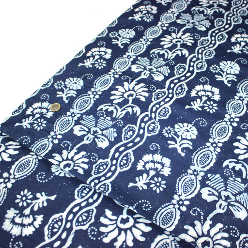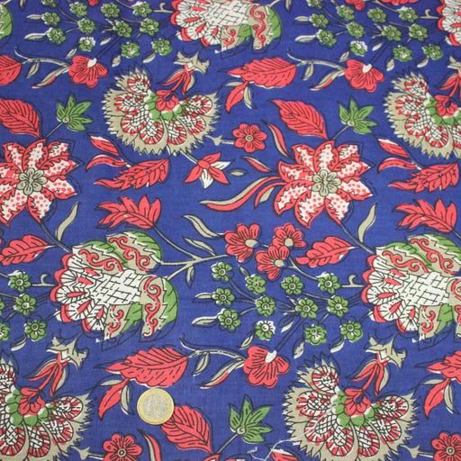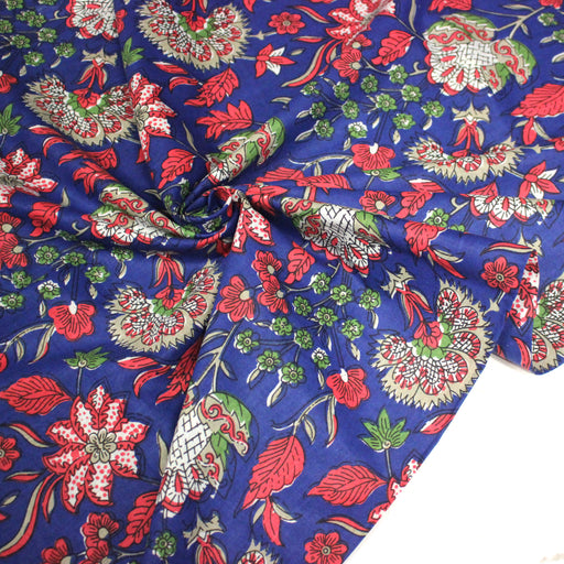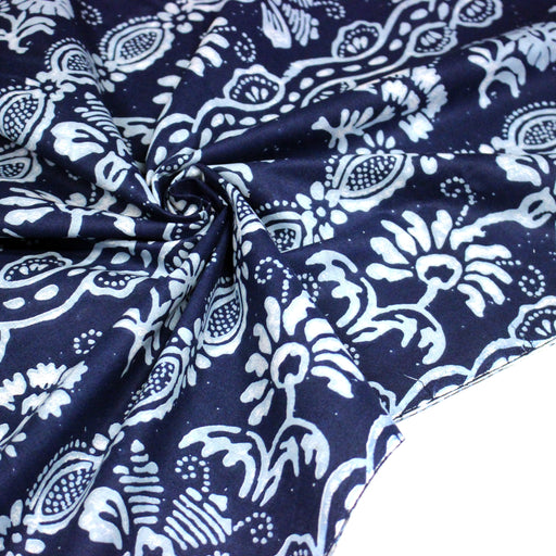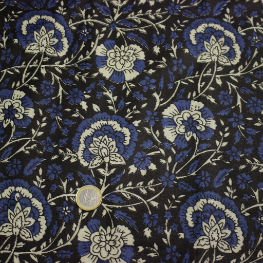 Tissu coton fin imprimé INDIENNES, fleuri traditionnel aux tons bleus, fond bleu marine - STANDARD 100 OEKO-TEX