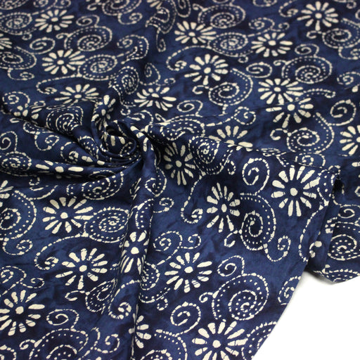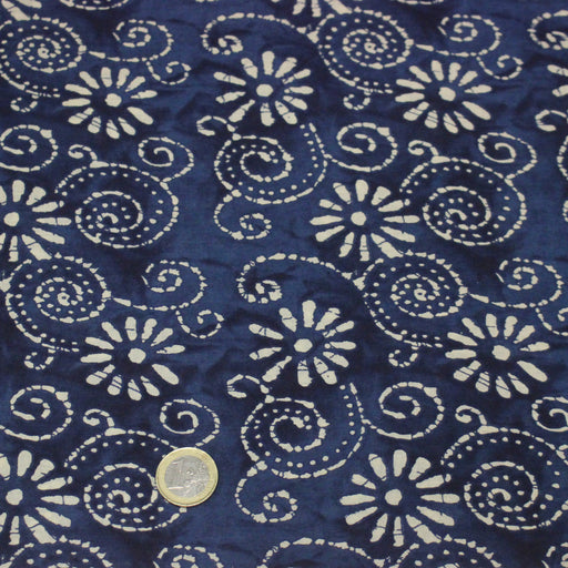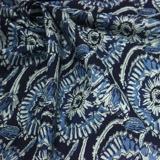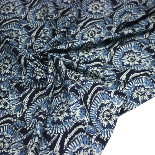 Tissu coton fin imprimé INDIENNES, fleuri traditionnel aux tons bleus, fond bleu marine - STANDARD 100 OEKO-TEX