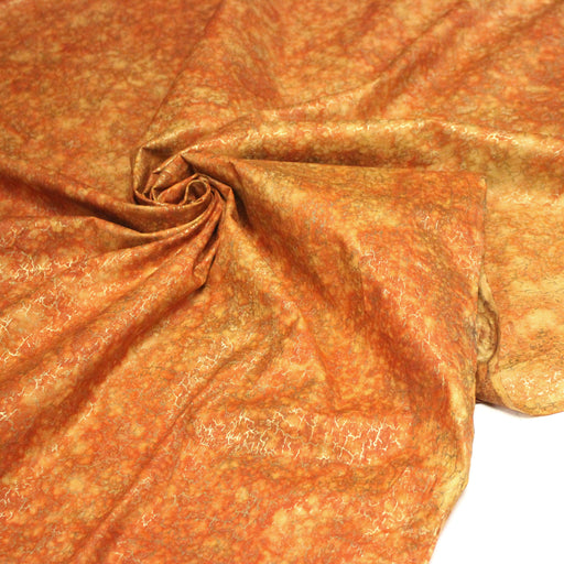 Tissu cotonnade faux-uni orange & craquelé doré - MADE IN INDIA