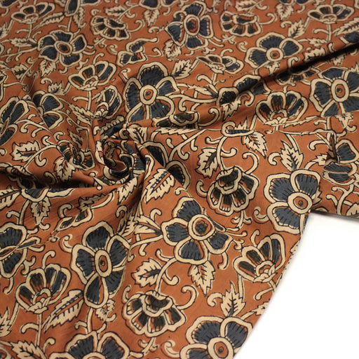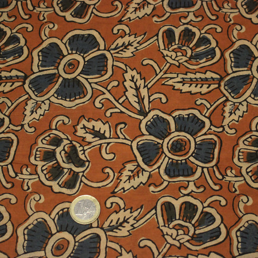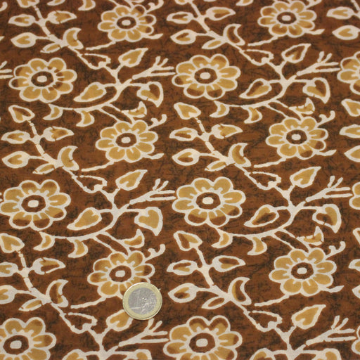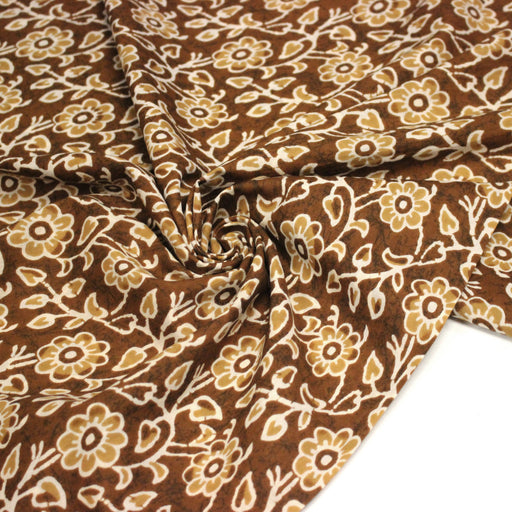 Tissu coton fin imprimé INDIENNES, ocre aux fleurs blanches et crème - STANDARD 100 OEKO-TEX