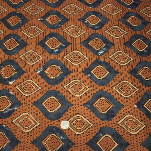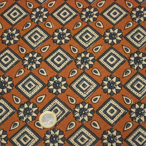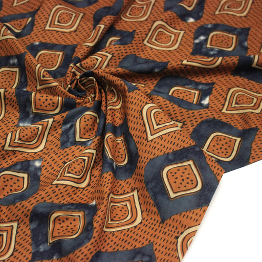 Tissu coton fin imprimé INDIENNES, losanges ocres et bleus - STANDARD 100 OEKO-TEX