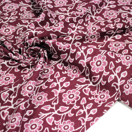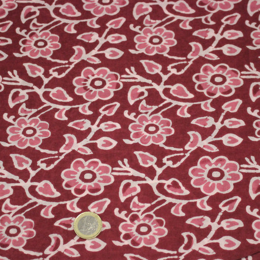 Tissu coton fin imprimé INDIENNES, rose magenta aux fleurs blanches et roses - STANDARD 100 OEKO-TEX