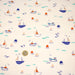 Largeur : 150 cm — Motif : petits bateaux bleus et oranges, méduses, mouettes,