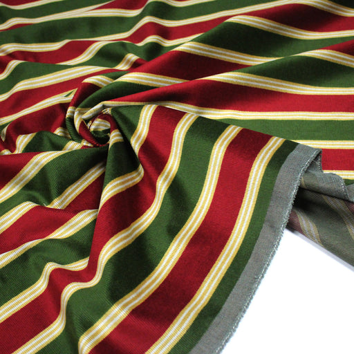 • Tissu velours côtelé aux larges rayures rouges et vertes, tissage jacquard
