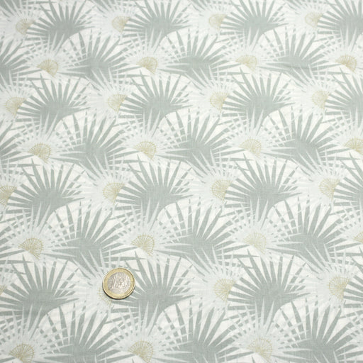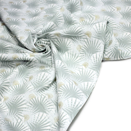 • Tissu cotonnade blanc aux branches tropicales & arbres du voyageur - OEKO-TEX STANDARD 100