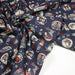 Le fond bleu marine profond structure l’imprimé et lui donne une vraie prestance. Les motifs écrus sont rehaussés de touches rouges intenses qui dynamisent l’ensemble sans l’alourdir. Cette combinaison limitée de couleurs facilite les associations et permet d’intégrer facilement notre tissu dans des univers variés, du plus traditionnel au plus contemporain.