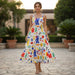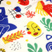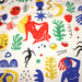 Avec ses aplats de couleur intenses et son graphisme assumé, notre cotonnade 100% coton en grande largeur 280 cm est une véritable déclaration de style. Le motif s’inspire de l’univers des papiers découpés façon Matisse, entre art moderne et illustration contemporaine, avec des silhouettes féminines stylisées, des formes végétales rondes et des symboles solaires qui donnent au tissu une énergie immédiate. Sur un fond blanc lumineux, le bleu, le jaune, le rouge et le vert s’expriment avec force, créant une composition décorative dynamique, audacieuse et résolument joyeuse.